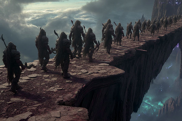 The bridge sprawls as wide as a large village, wide enough for three hundred men to march abreast with shields locked. From its southern approach, the northern end is little more than a smear against the horizon, vanishing into heat shimmer and shadow. Its name is no metaphor, bones litter its span, bleached pale by sun and wind, remnants of centuries of blood spilled upon its back. The wind carries their fragments, scattering them like dust across the abyss.